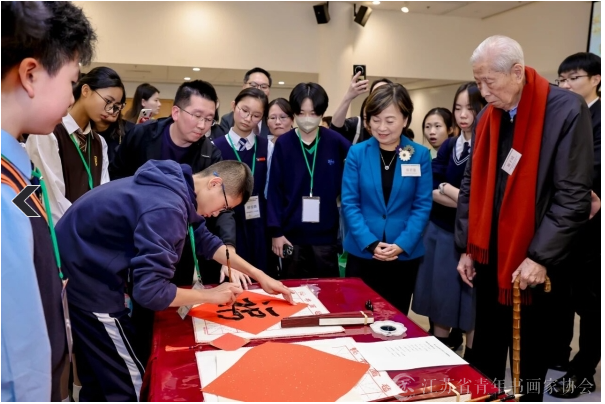 开幕式后还举办了“大手牵小手”书法笔会活动,中国书协代表团和书家以“历史传承与时代使命”为主题讲解书法艺术,并与小书家们一起,围绕抗战胜利80周年即席书写相关诗词锦句,共同在方寸纸笔间弘扬抗战精神,在翰墨传承中赓续中华文脉。